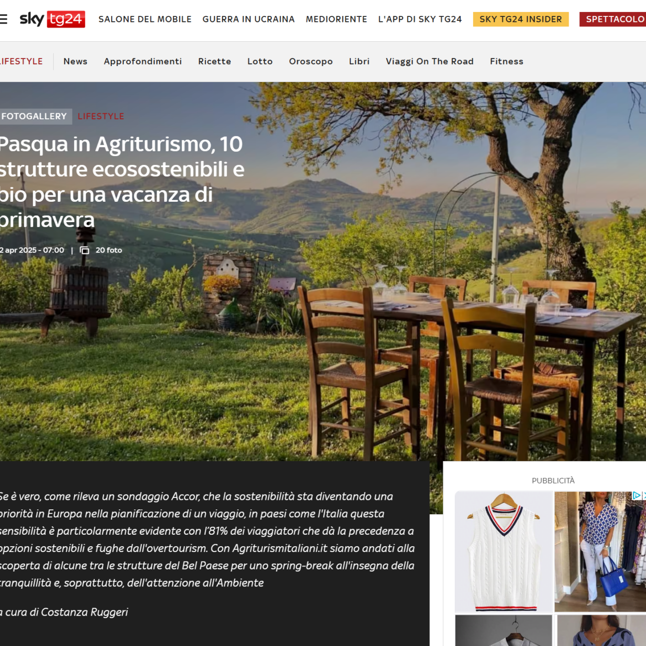Insieme a SKYTG24! 10 Agriturismi BIO ed Ecosostenibili